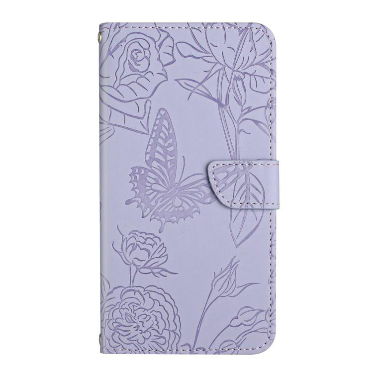 Funda de Piel con Relieve Peonía y Mariposa para ZTE Nubia S 5G A403Zt (Morado)