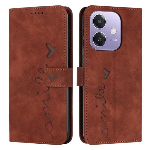 Funda de Piel con Relieve En Forma de Corazón para Oppo A3X 5G (Marrón)