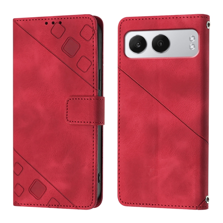 Funda de Piel con Relieve para OnePlus Nord 4 5G (Roja)