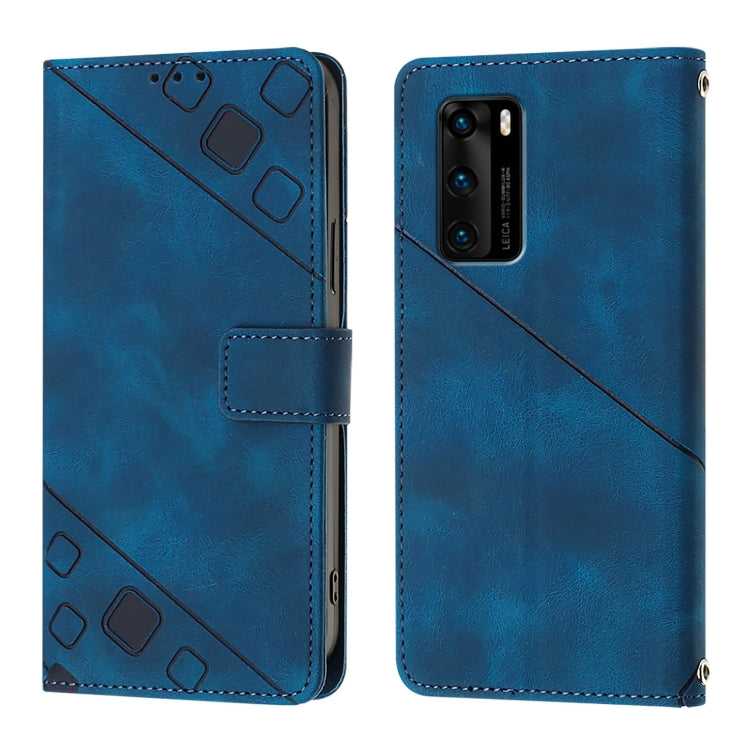 - 1x Funda de Piel con Relieve para Teléfono Huawei P40 (Azul)