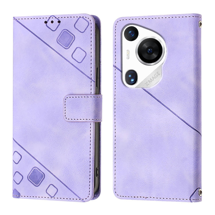 Funda de Piel con Relieve para Teléfono Huawei Pura 70 Pro (Morado Claro)
