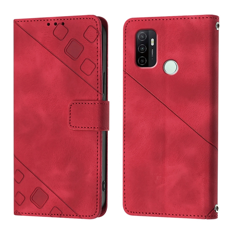 Funda de Piel con Relieve para Teléfono Oppo A11S 4G (Roja)