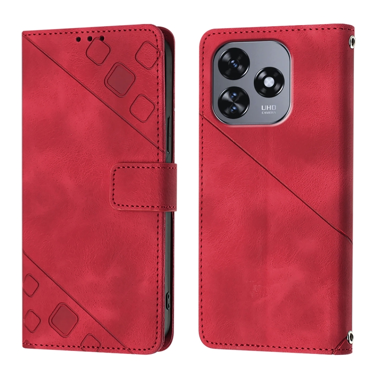Funda de Piel con Relieve para Teléfono Oukitel C51 (Roja)