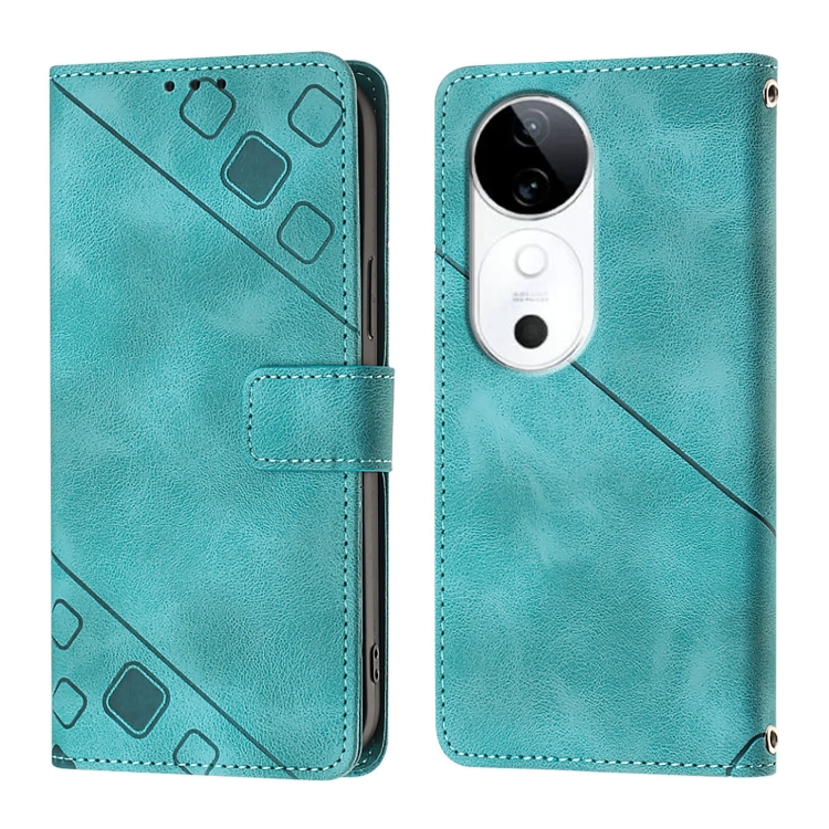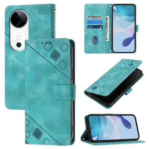 Funda de Piel con Relieve para Teléfono Vivo S19 Skin Feel (Verde)