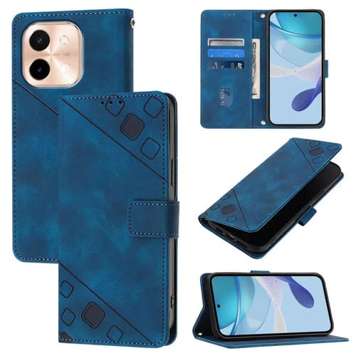 Funda de Piel con Relieve para Teléfono Vivo Y28 4G (Azul)