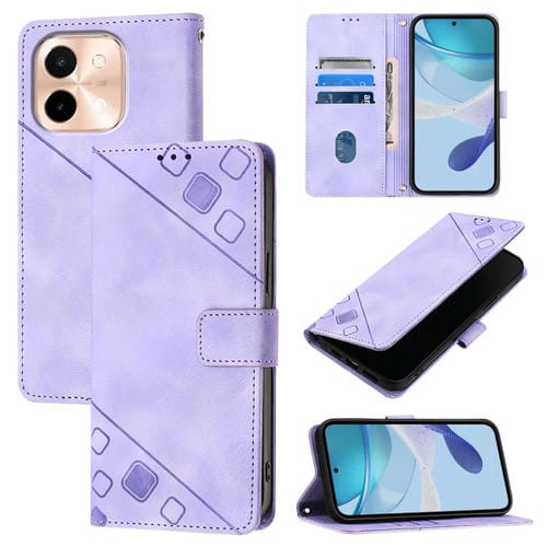 Funda de Piel con Relieve para Teléfono Vivo Y28 4G (Morado Claro)