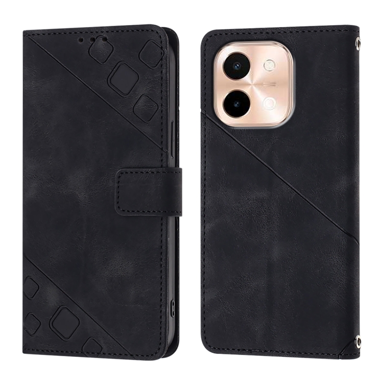 Funda de Piel con Relieve para Teléfono Vivo Y28 4G (Negra)