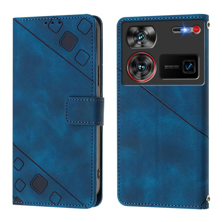 Funda de Piel con Relieve para Teléfono ZTE Nubia Z60 Ultra (Azul)