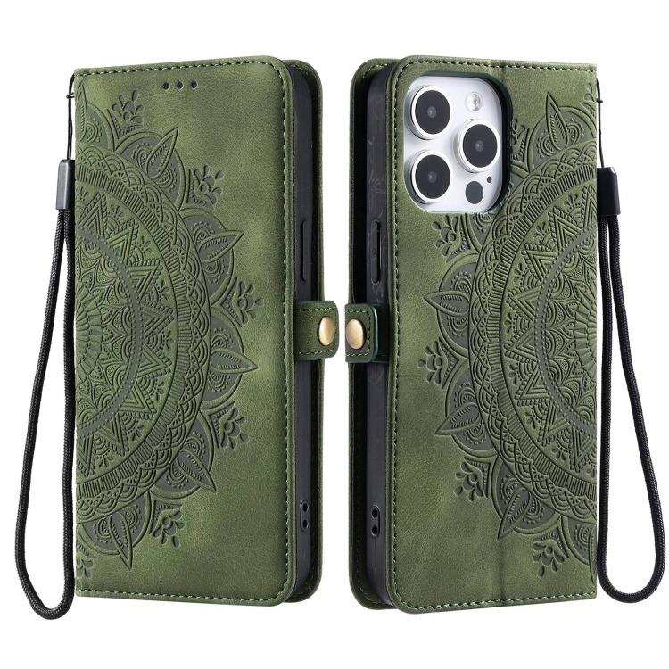 Funda de Piel con Relieve Totem para iPhone 16 Pro (Verde Oscuro)