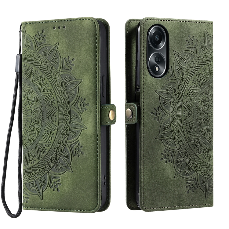 Funda de Piel con Relieve Totem para Oppo A58 4G (Verde Oscuro)