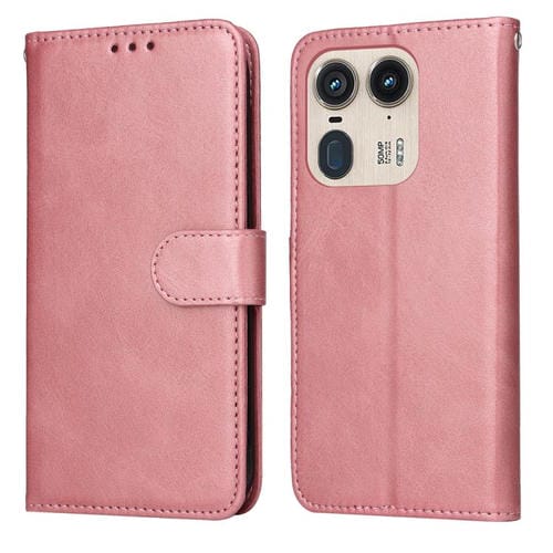 Funda de Piel con Tapa Textura Clásica Becerro para Motorola Edge 50 Ultra/X50 Ultra (Oro Rosa)
