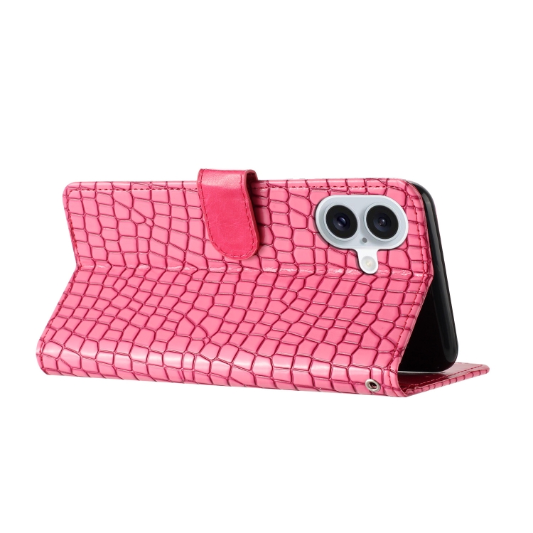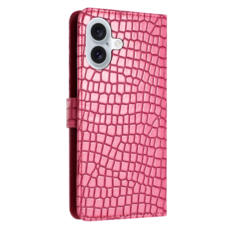 Funda de Piel con Tapa Horizontal Textura de Cocodrilo para iPhone 16 Plus (Rosa Rojo)