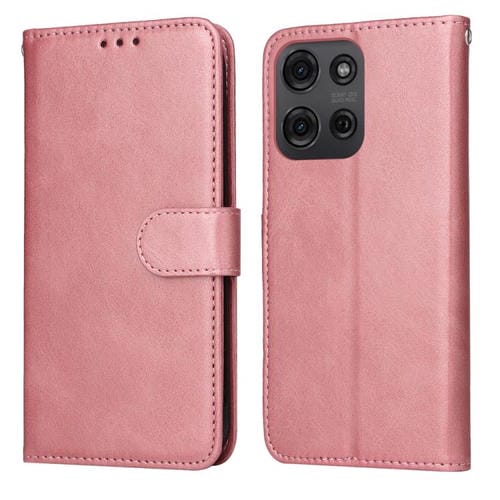 Funda de Piel con Tapa para Motorola Moto G75 5G (Oro Rosa) Textura Clásica Becerro