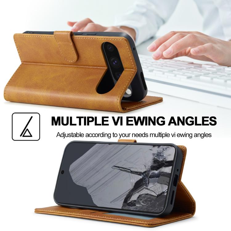Funda de piel con textura de becerro LC.IMEEKE para Google Pixel 10 Pro XL (amarilla)