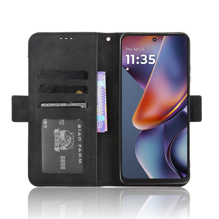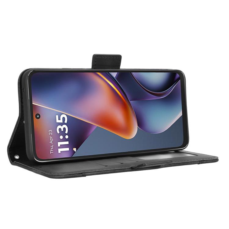 Funda de Piel Textura de Becerro para Motorola Moto G 5G (2025) con Ranuras para Tarjetas (Negro)