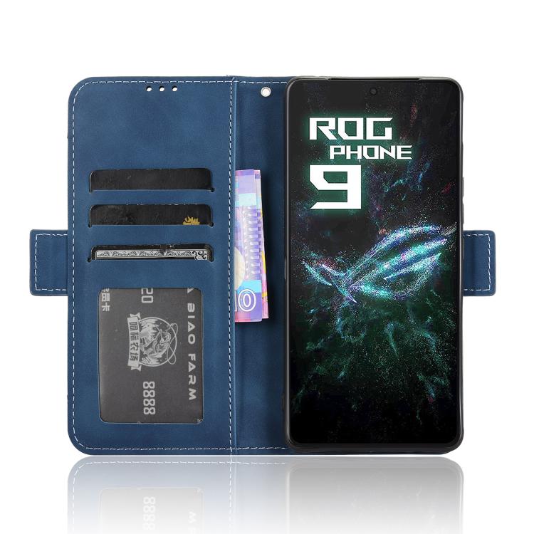 Funda de Piel con Textura de Becerro y Ranuras para Tarjetas para Asus Rog Phone 9/9 Pro (Azul)
