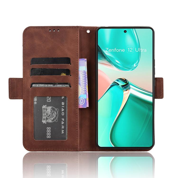 Funda de Piel Textura de Becerro con Ranuras para Tarjetas para Asus Zenfone 12 Ultra (Marrón)