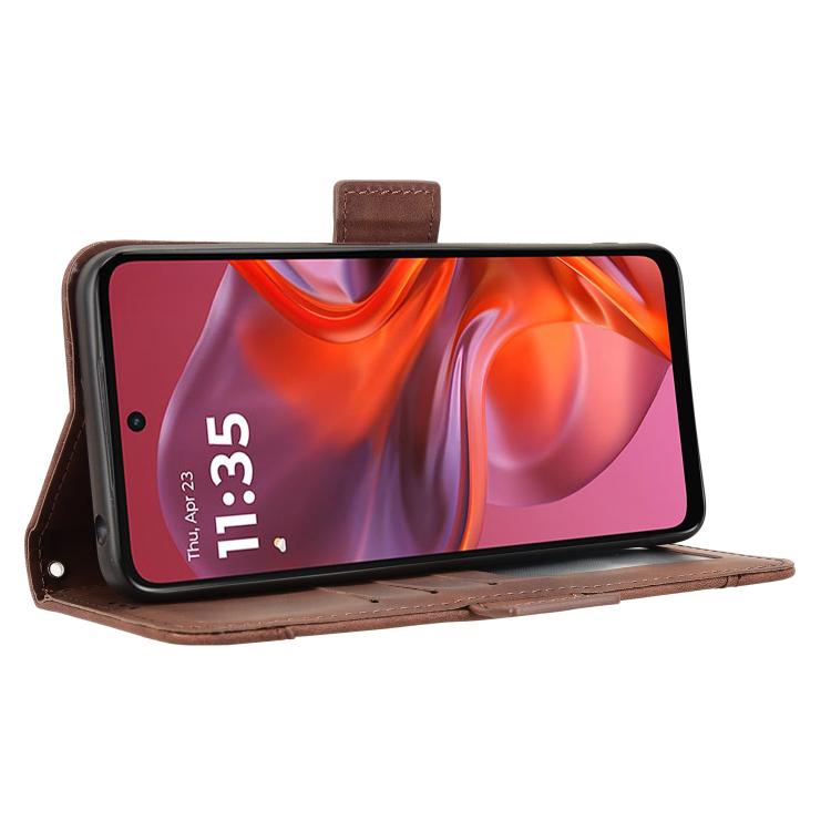 Funda de Piel con Textura de Becerro y Ranuras para Tarjetas para Motorola Moto G05 4G / E15 4G (Marrón)