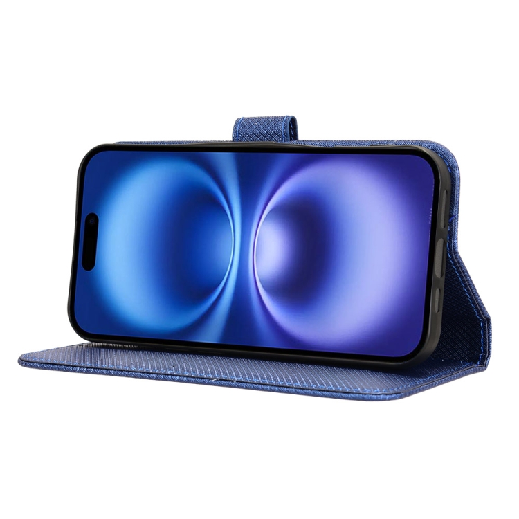 Funda de Piel para iPhone 16 Textura de Diamante (Azul)