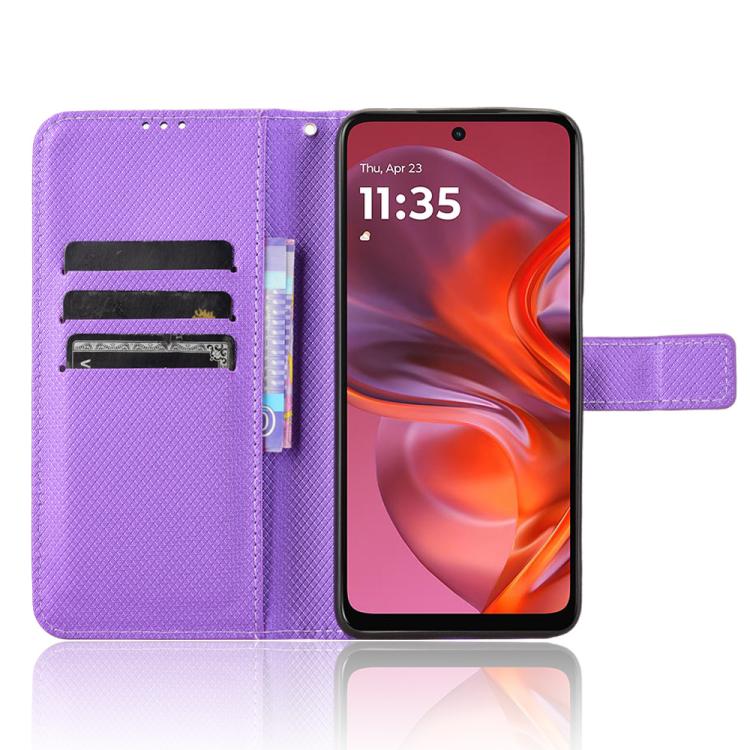 Funda de Piel con Textura de Diamante para Motorola Moto G05 4G y E15 4G (Morada)