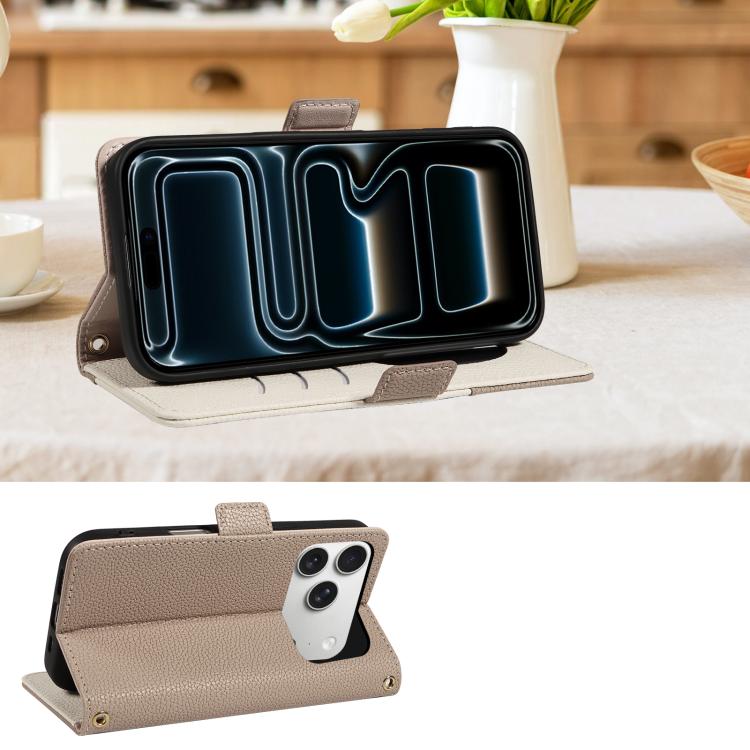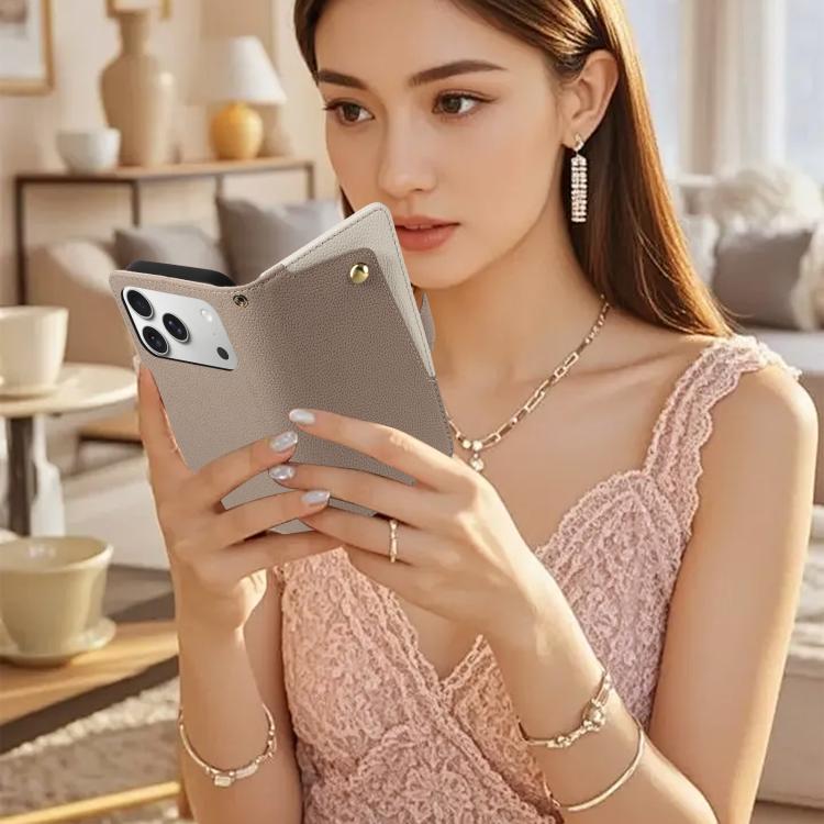 Funda de piel con textura de lichi y espejo para iPhone 17 Pro Max (marrón)