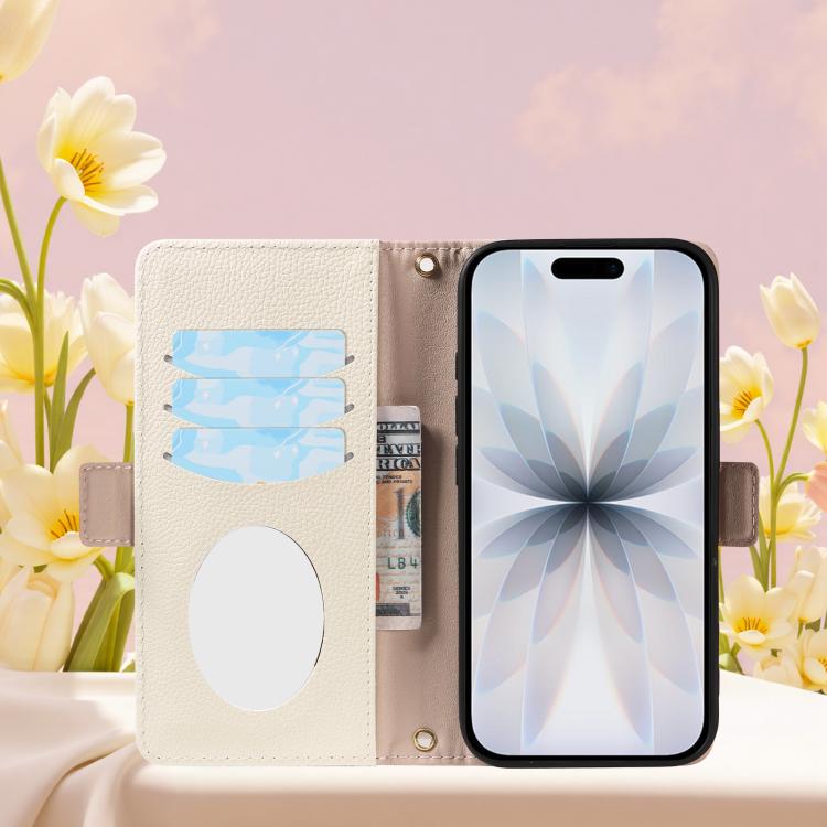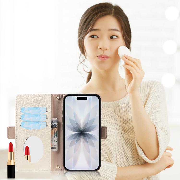 Funda de piel con textura de lichi y espejo para iPhone 17 (rosa)