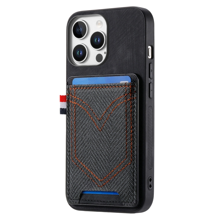 Funda de Piel con Textura Vaquera para iPhone 16 Pro con Ranura para Tarjetas (Negro)
