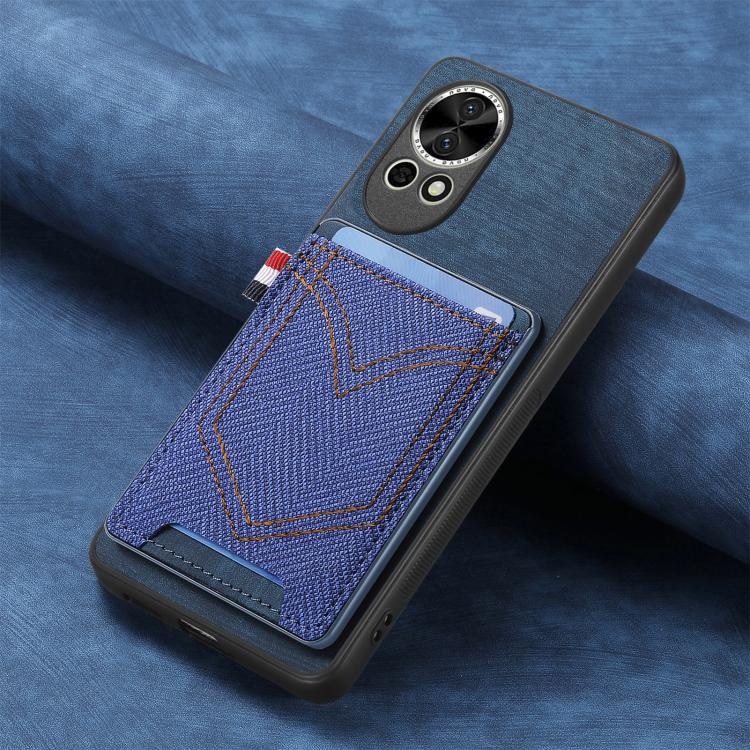 Funda de Piel con Textura Vaquera para Huawei Nova 13 con Ranura para Tarjetas (Azul)