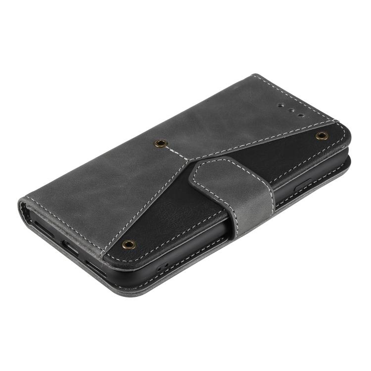 Funda de Piel de Becerro para iPhone 16E con Textura y Costuras Efecto Piel de Uña (Gris)