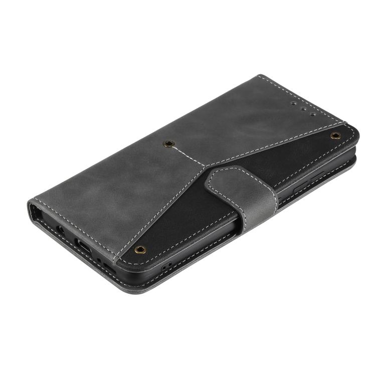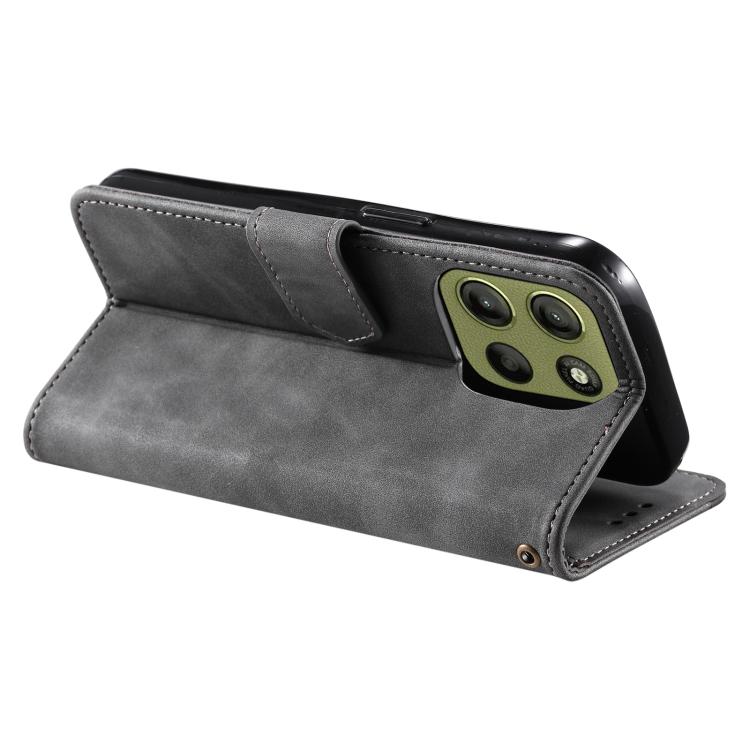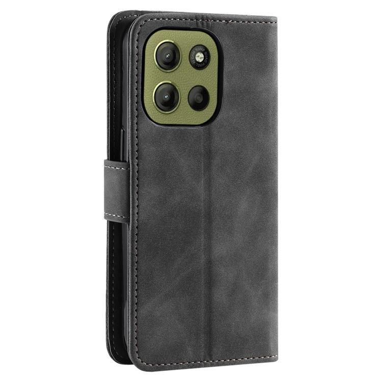 Funda de Piel de Becerro para Motorola Moto G15 (Gris) con Textura y Costuras Efecto Uñas