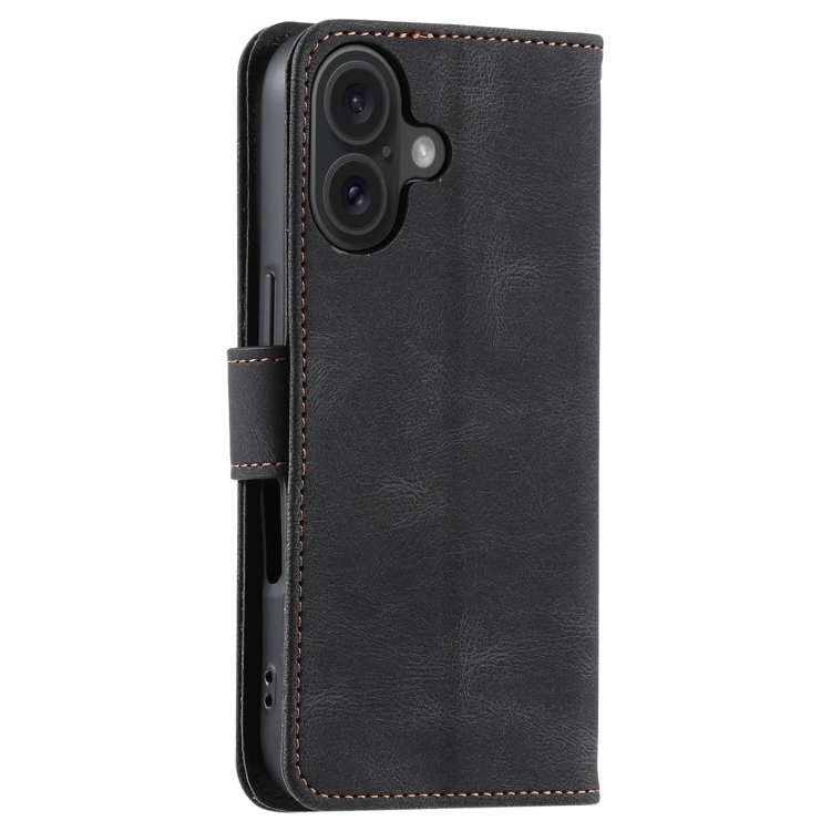 Funda de Piel de Becerro para iPhone 16 Plus con Costuras y Textura (Negra)