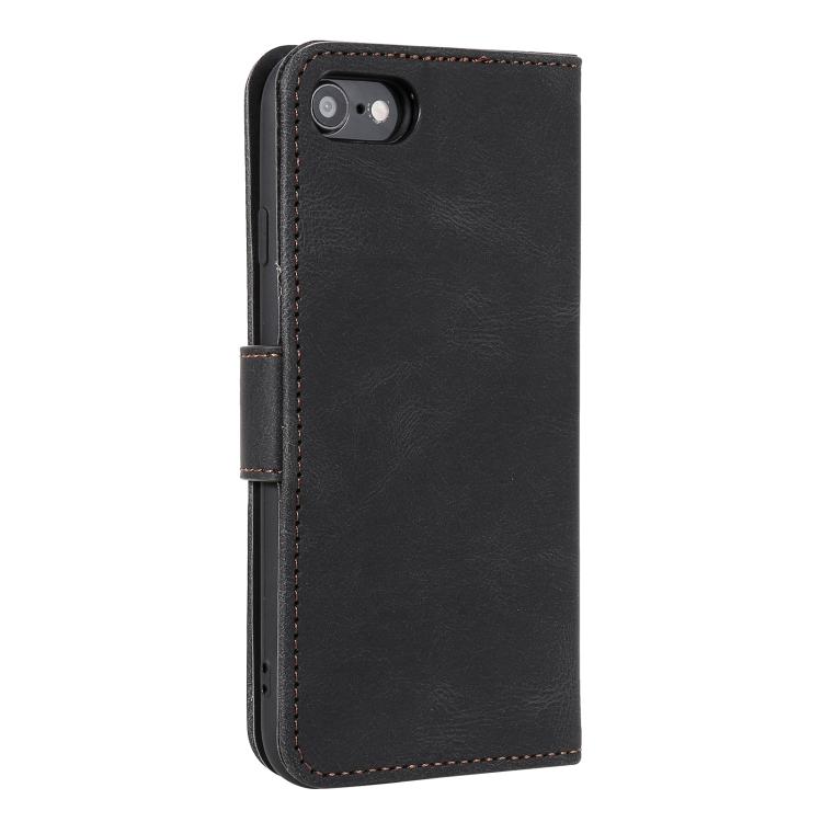 Funda para iPhone 16E Piel de Becerro Textura y Costuras Tacto de Uña (Negra)