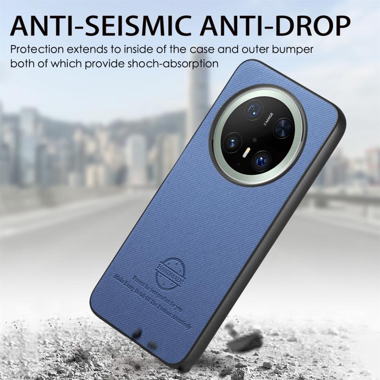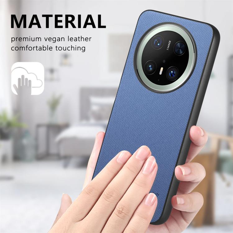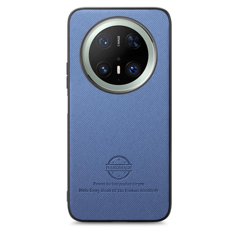 Funda Piel de Sarga con Parte Trasera de Cuero para Huawei Mate 70 Pro (Azul)