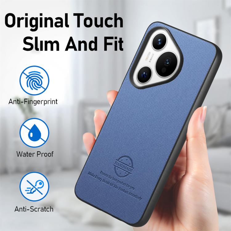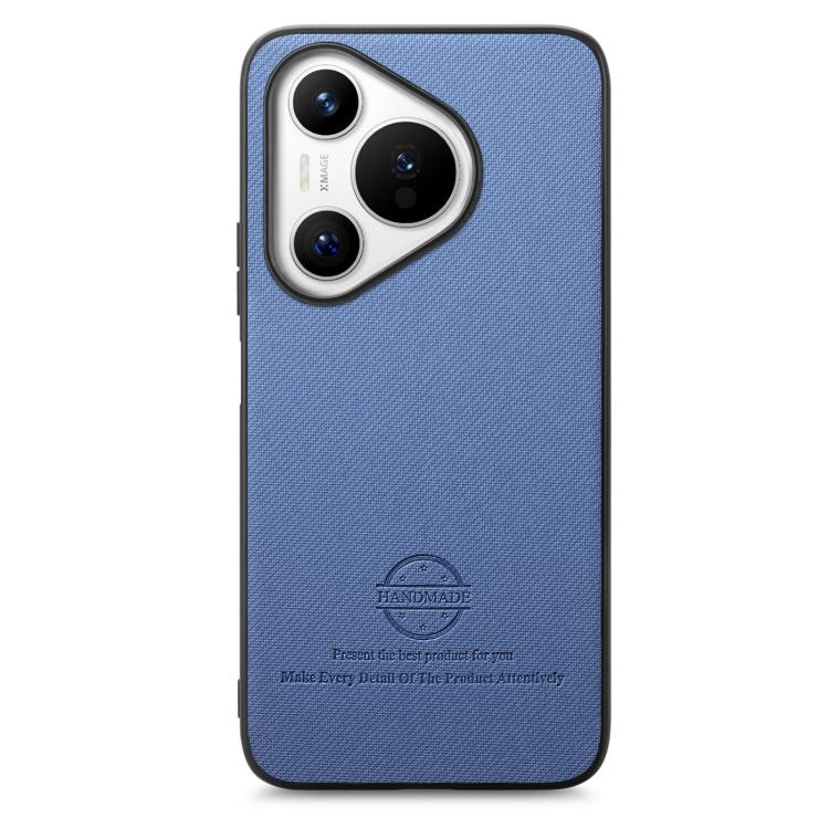 Funda de Piel de Sarga con Parte Trasera de Cuero para Huawei Pura 70 (Azul)