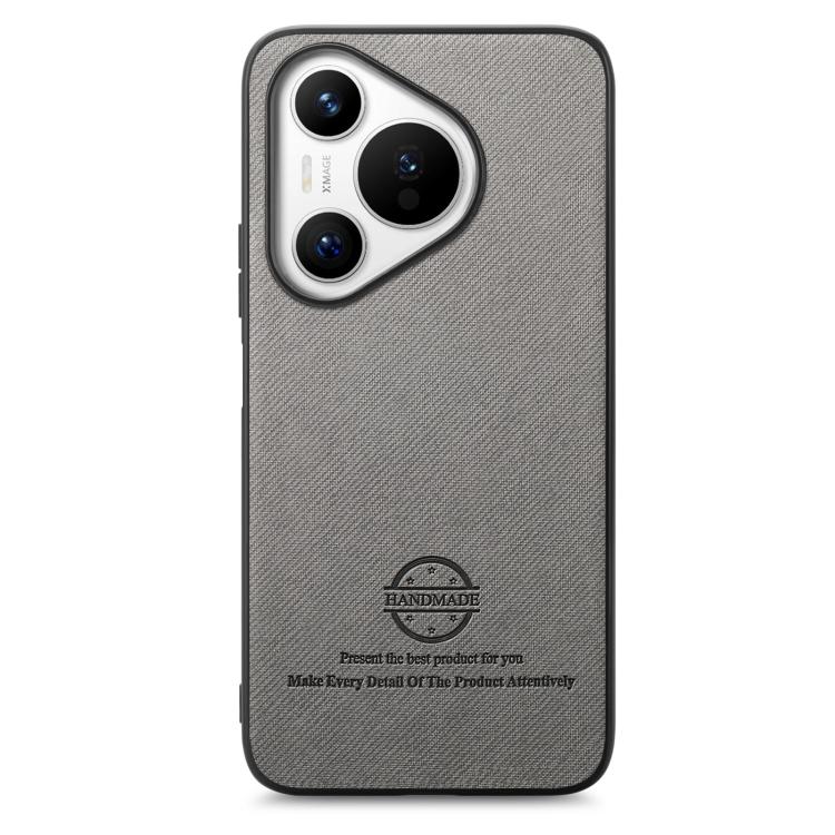 Funda de Piel de Sarga con Parte Trasera de Cuero para Huawei Pura 70 (Gris)