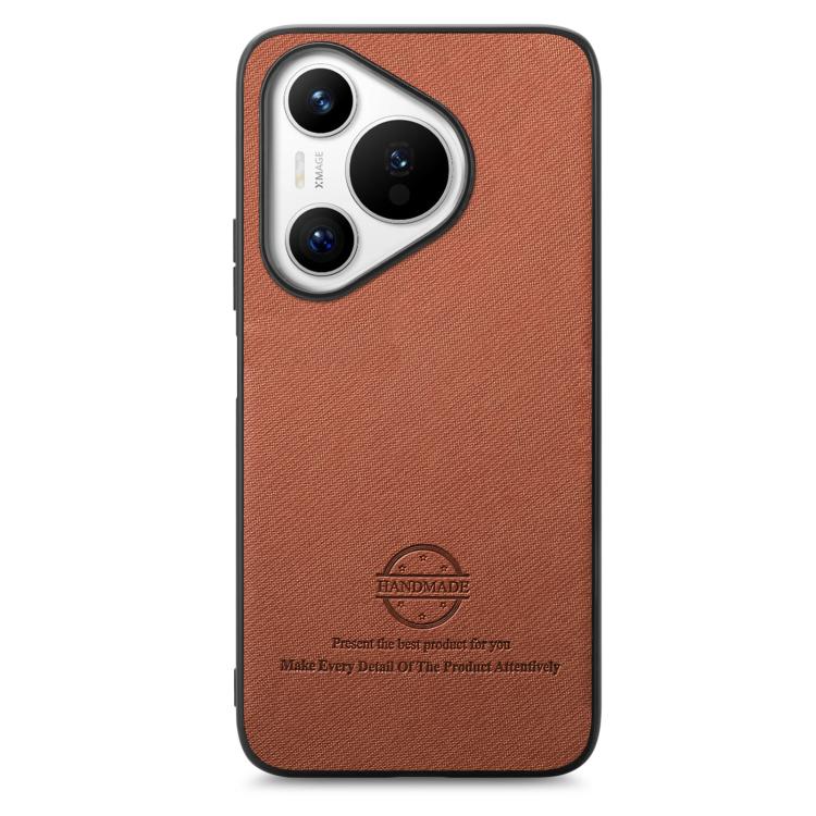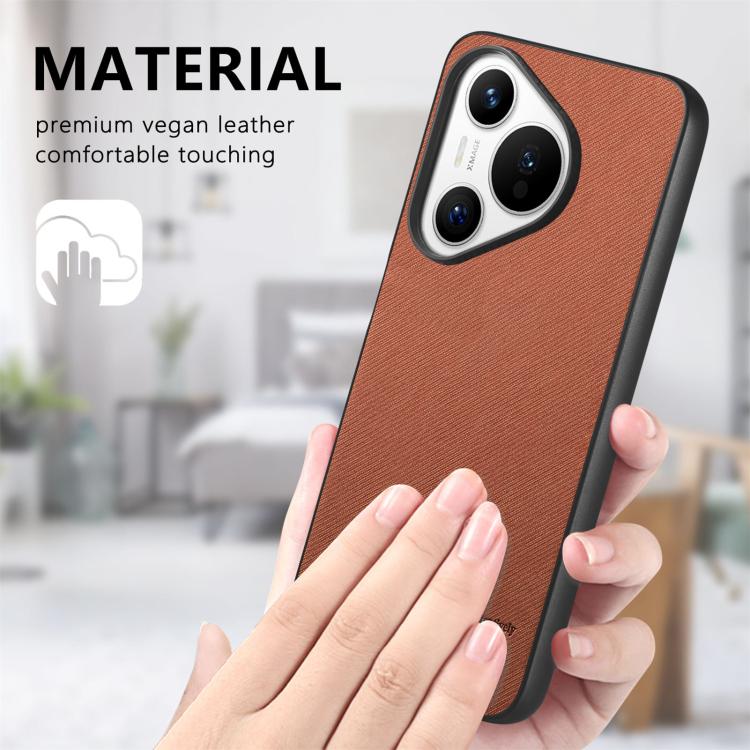 Funda de Piel de Sarga con Parte Trasera de Cuero para Huawei Pura 70 Pro (Marrón)