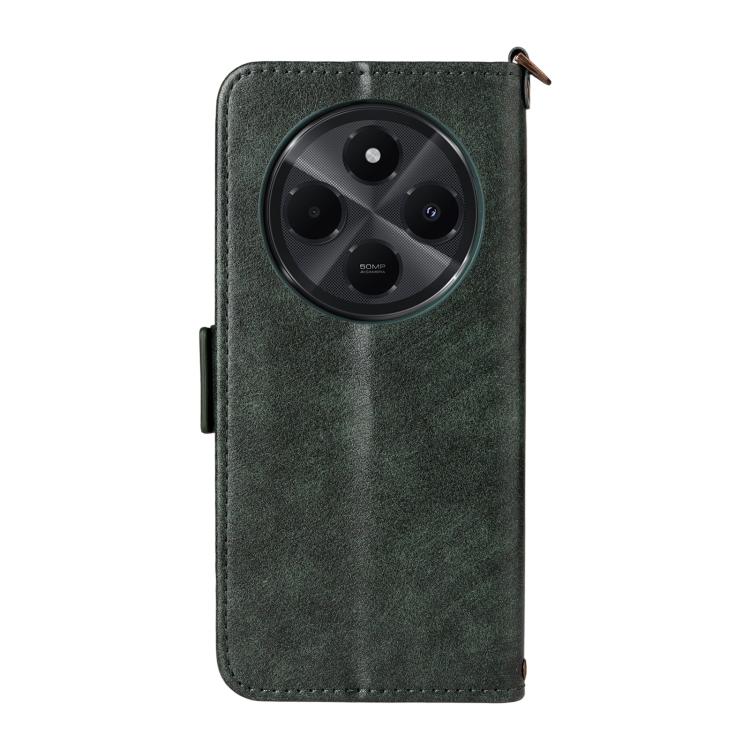 Funda de piel de vacuno cruzada con ranuras para múltiples tarjetas para Redmi 14C 5G / 4G / A4 5G (verde)