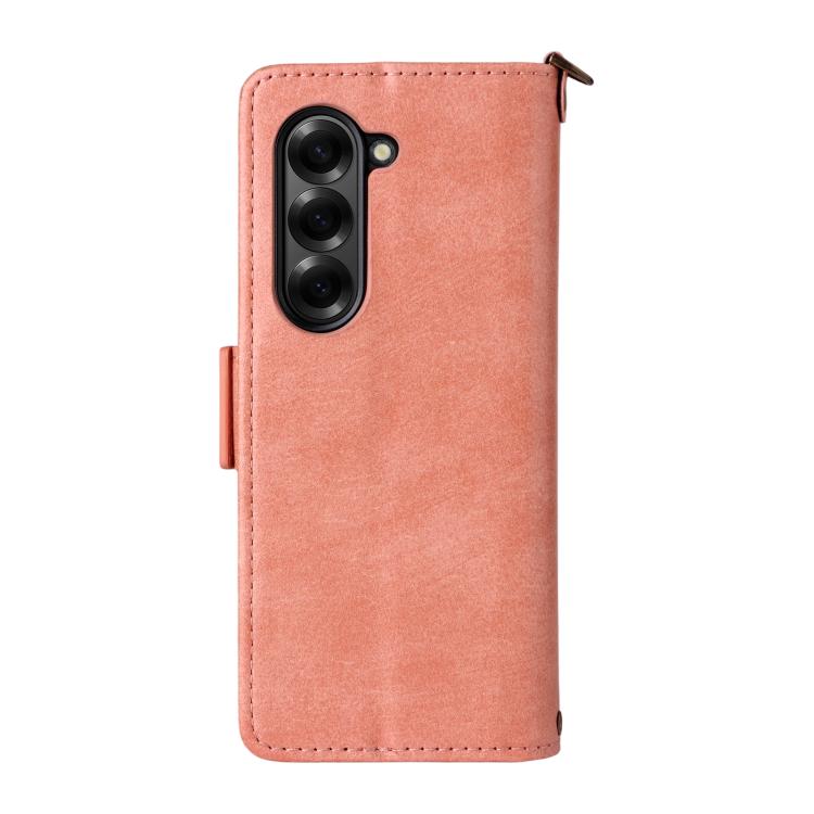 Funda de piel de vacuno cruzada con ranuras para múltiples tarjetas para Samsung Galaxy Z Fold6 5G (rosa)