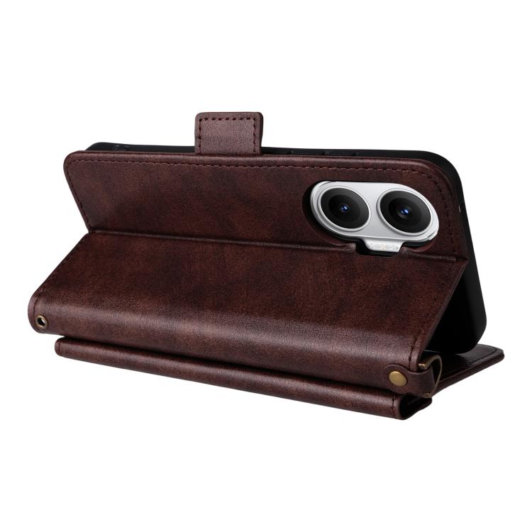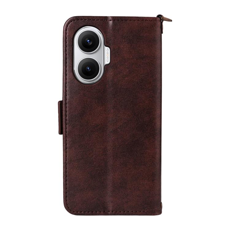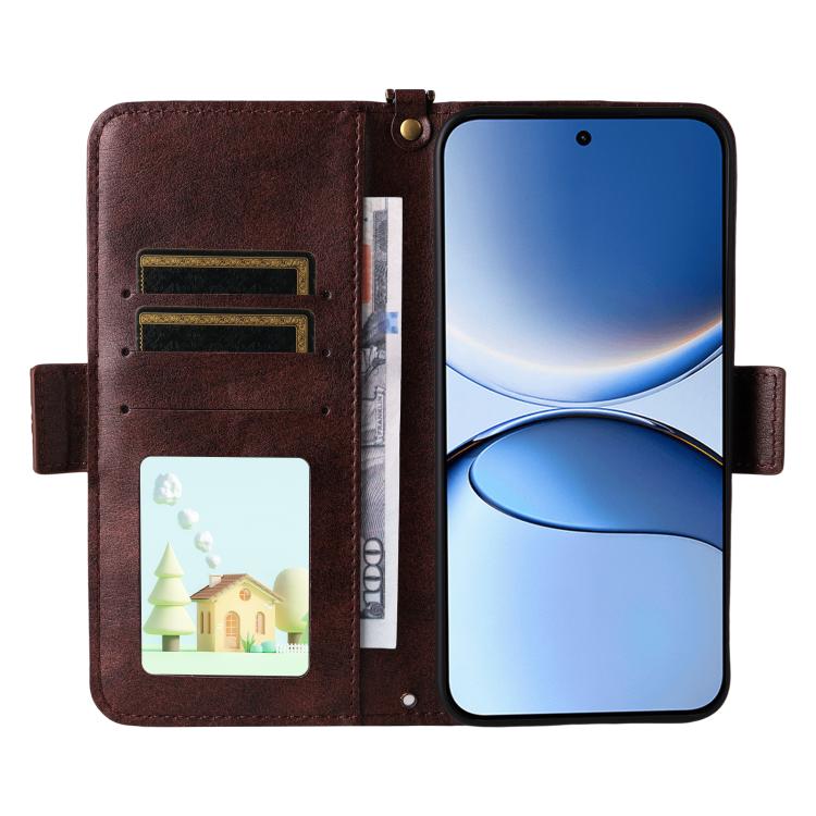 Funda de piel de vacuno cruzada con ranuras para múltiples tarjetas para Xiaomi Poco F7 / Redmi Turbo 4 Pro 5G (marrón)