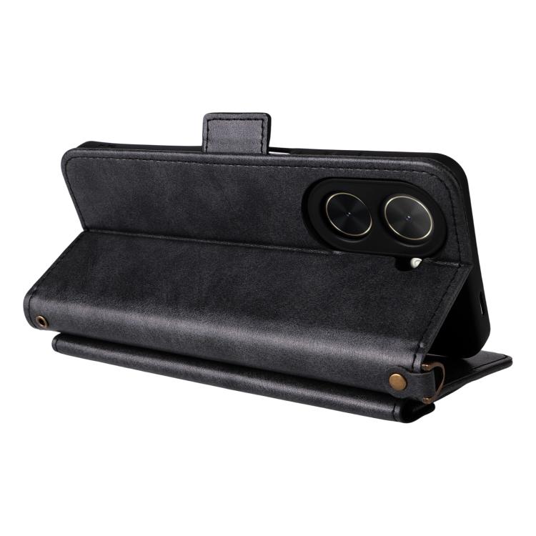 Funda de piel de vacuno cruzada con ranuras para tarjetas para Xiaomi Poco C71 / Redmi A5 4G (171,7 mm) (negro)