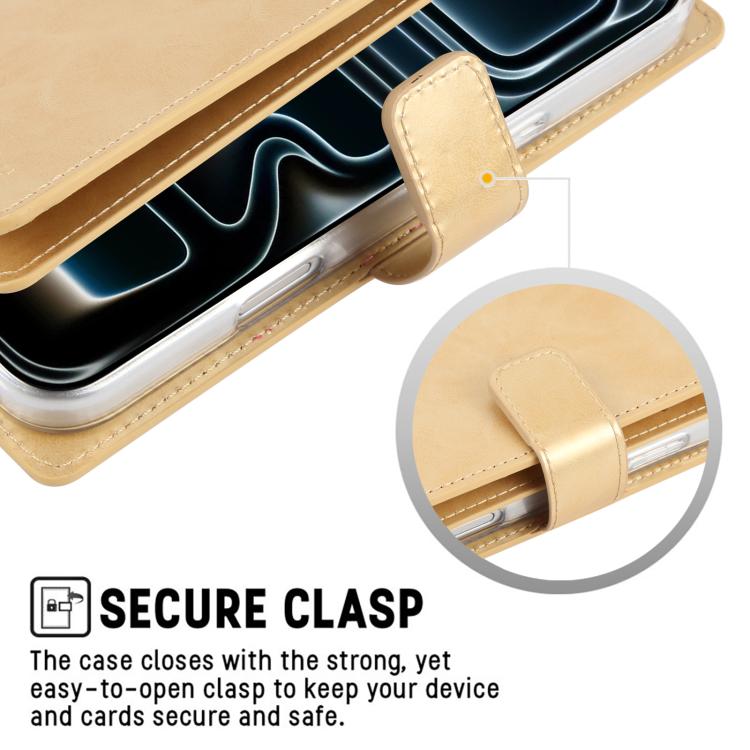 Funda de piel GOOSPERY MANSOOR DIARY para iPhone 17 Pro con 9 ranuras para tarjetas (dorada)