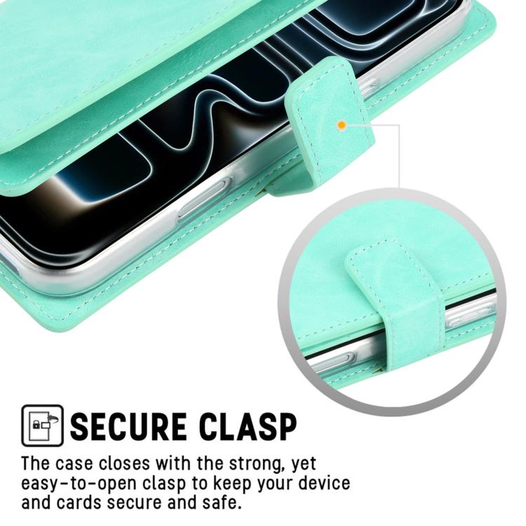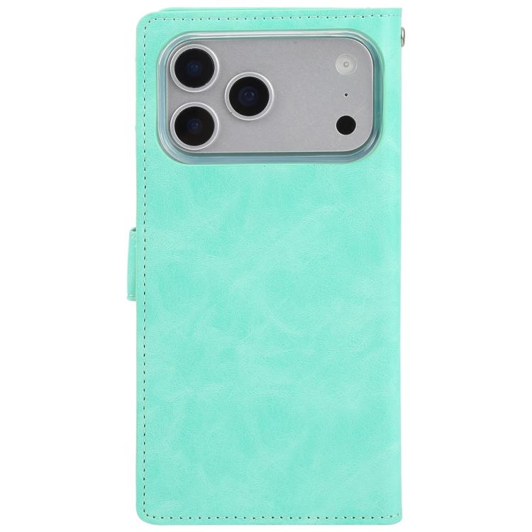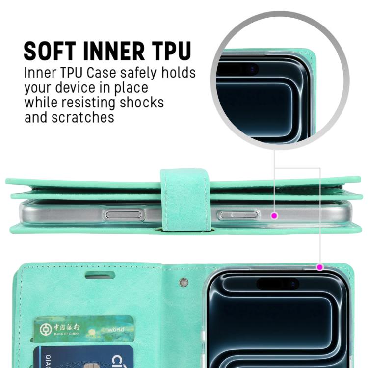 Funda de piel GOOSPERY MANSOOR DIARY para iPhone 17 Pro Max con 9 ranuras para tarjetas (verde menta)