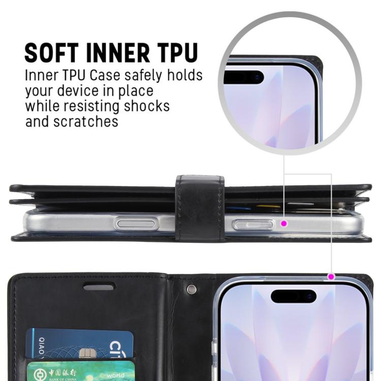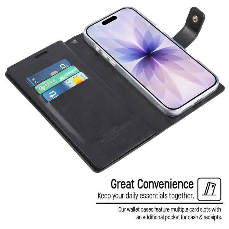 Funda de piel para iPhone 17 GOOSPERY MANSOOR DIARY con 9 ranuras para tarjetas (negra)