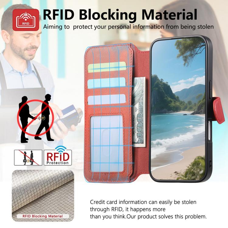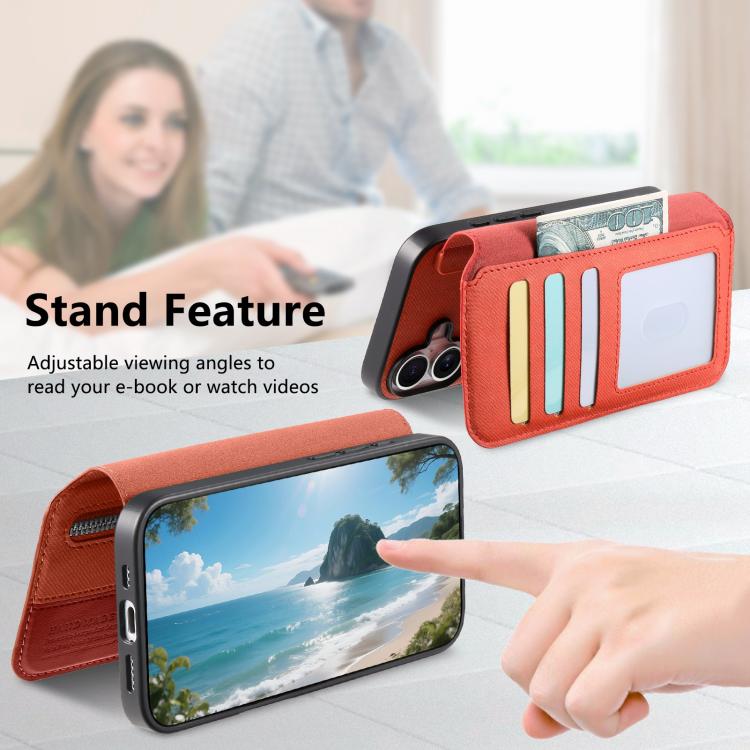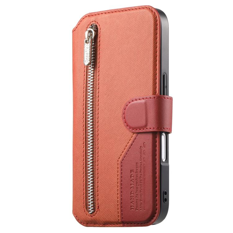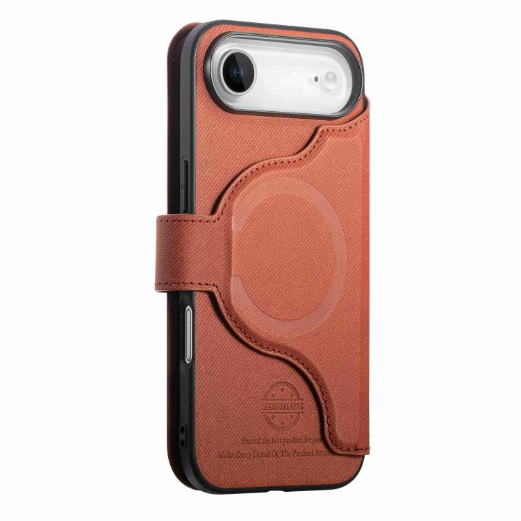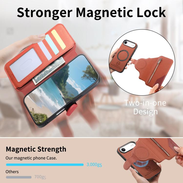 Funda de piel para iPhone Air con cremallera, MagSafe RFID antirrobo y tejido de sarga (naranja).