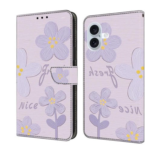 Funda de Piel para iPhone 16 Pintada Fresca Pequeñas Flores (Lilas)