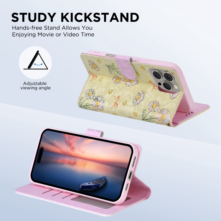 Funda de Piel Rfid para iPhone 16 Plus con Pintura Bronceada (Margarita Amarilla)