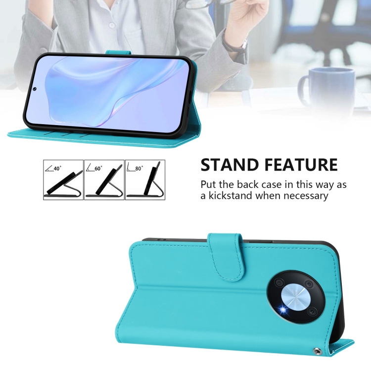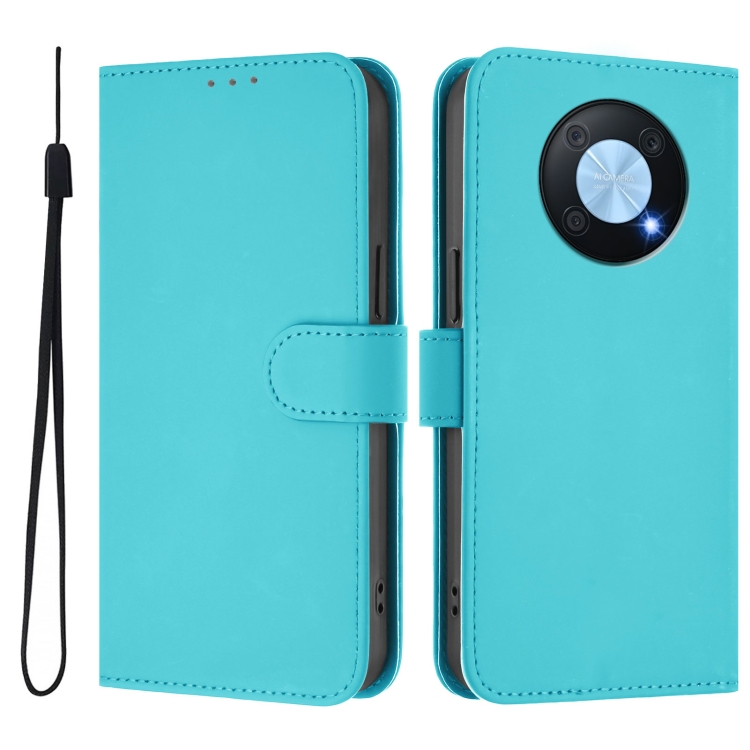 Funda de Piel Sintética con Cordón para Huawei Enjoy 50 Pro 4G/Nova Y90 (Azul Lago)