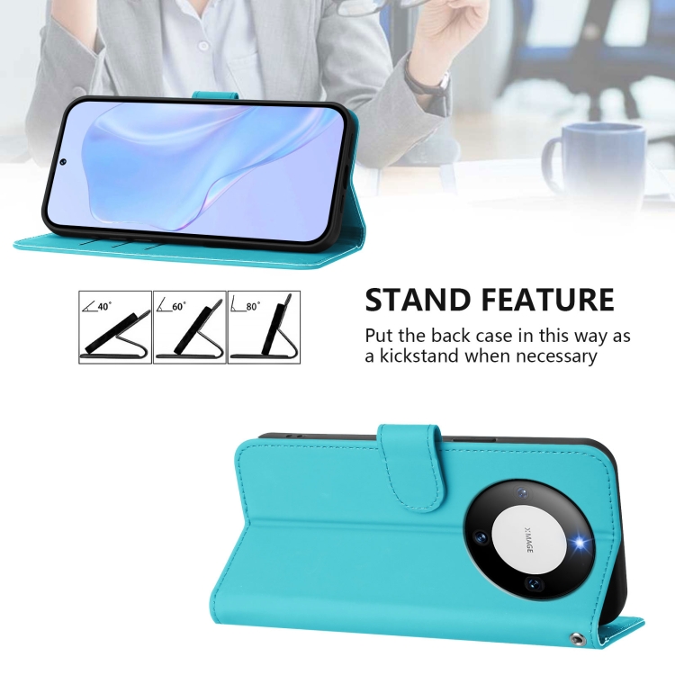 Funda de Piel Sintética con Cordón para Huawei Mate 60 Pro/60 Pro+ (Azul Lago)