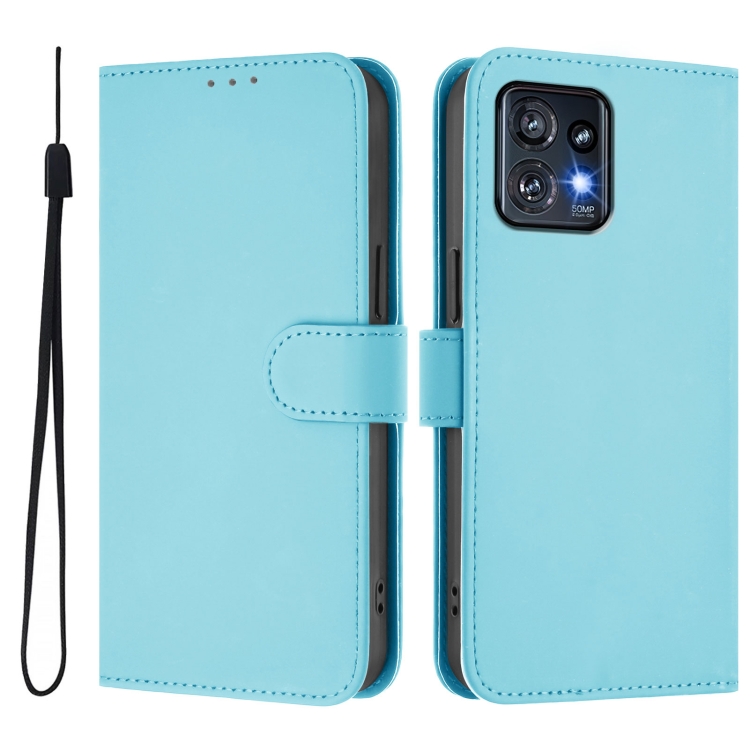 Funda de Piel Sintética con Cordón para Motorola Edge+ 2023 Moto X40 (Azul Cielo)