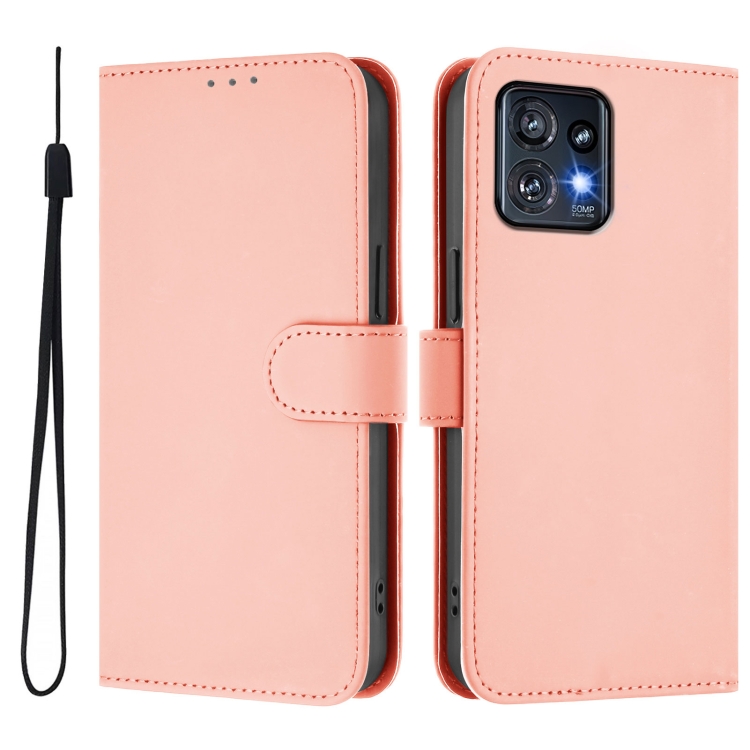 Funda de Piel Sintética con Cordón para Motorola Edge+ 2023 Moto X40 (Rosa)